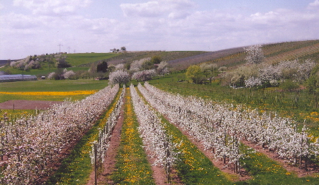 Vom 6 qm großen Südwest-Balkon haben sie einen unverbauten Panoramablick auf Obstwiesen und Weinberge.